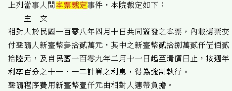 (二)只需要本票,不需要經過漫長的訴訟就可以利用國家機器拿到錢。真的是一票在手,希望無窮呢!
